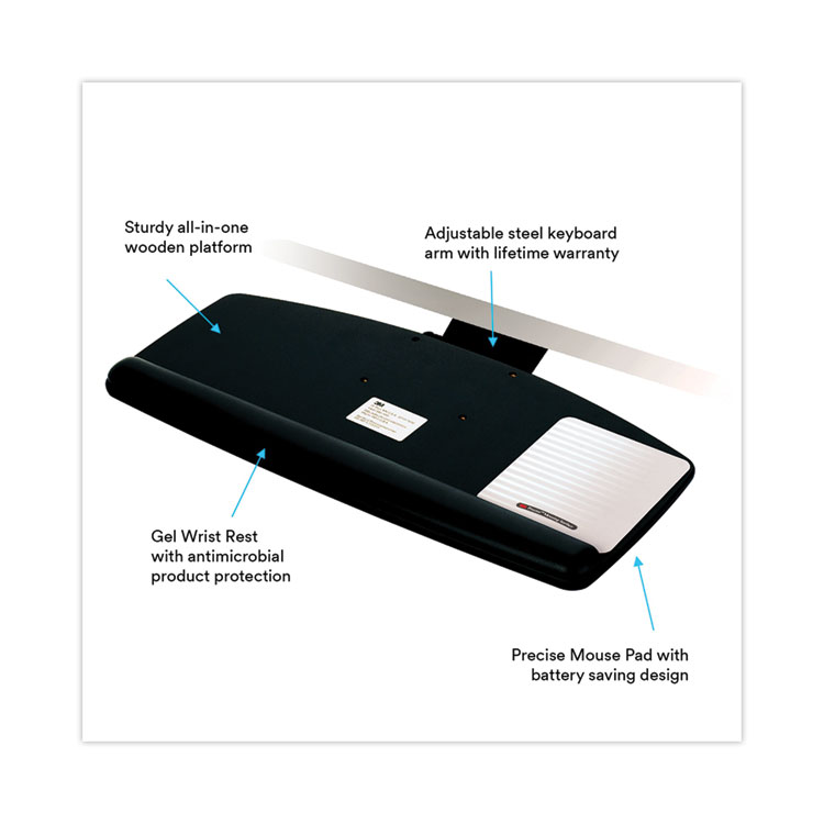3M Easy Adjust Keyboard Tray, Standard Platform, 23″ Track, Black (MMMAKT90LE)
