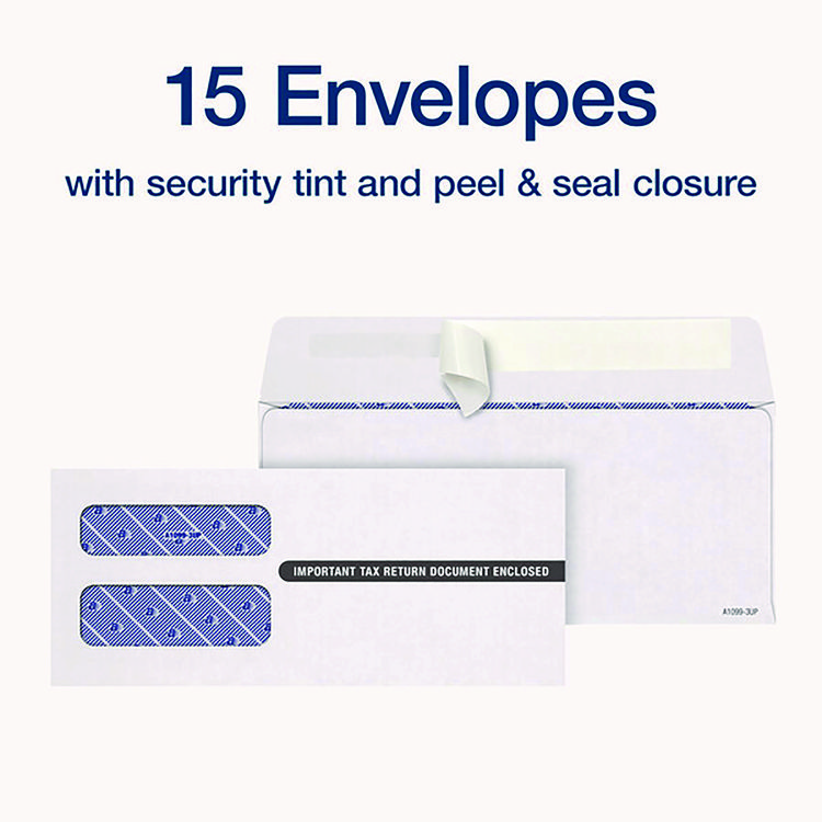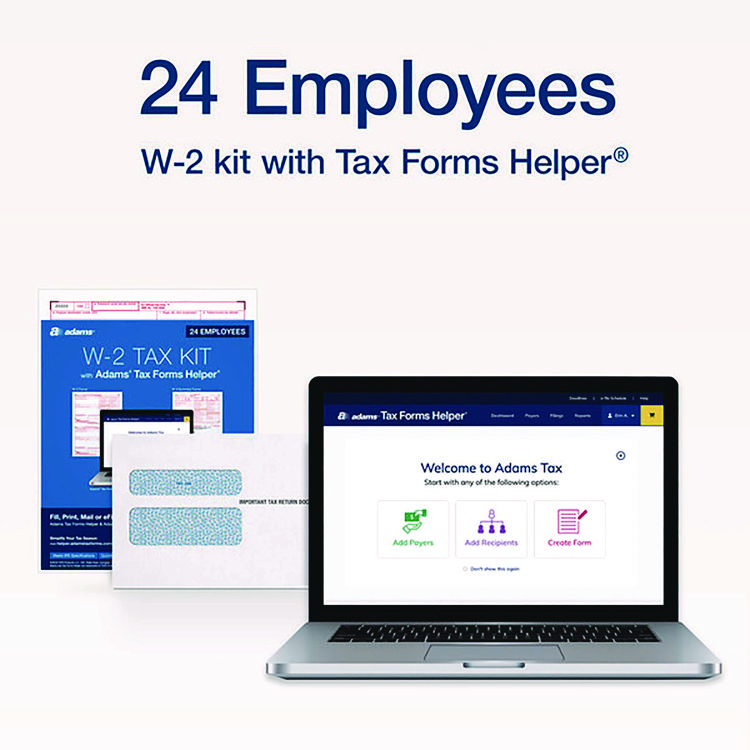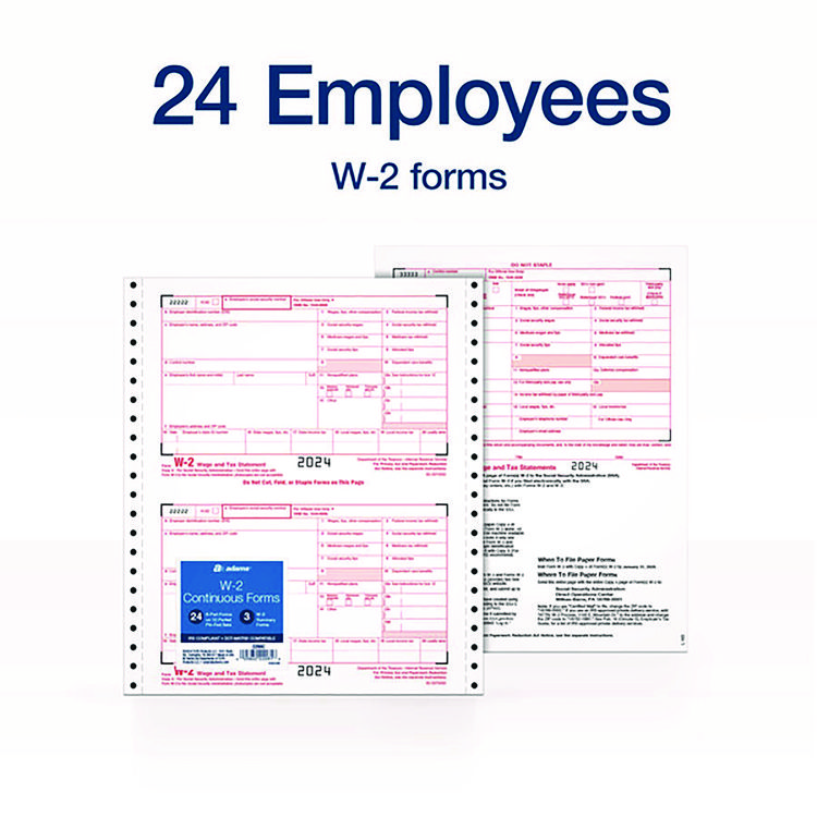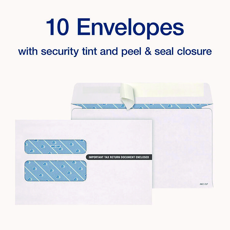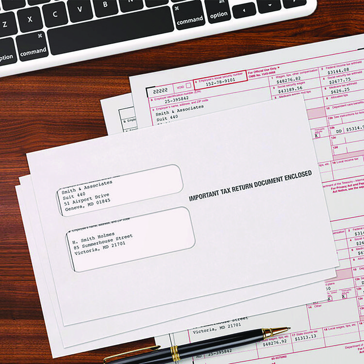 Adams W-2 Gummed Seal Double-Window Envelopes, Commercial Flap, Gummed Closure, 5.63 x 9, White, 24/Pack (TOP2219LSR)