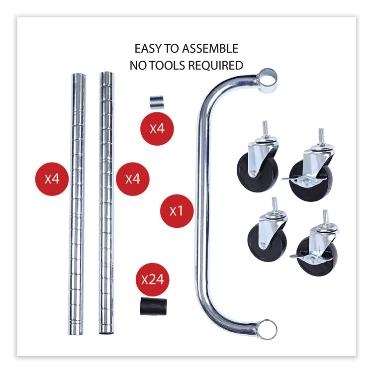 Alera BA Plus Wire Shelving Kit is a strong storage solution with four shelves that hold up to 1,000 lbs each. It’s perfect for industrial, food service, medical, or other uses. The shelves are 24 inches deep and 1 inch thick, and the rust-resistant finish works well in wet or dry areas, even freezers. The open design allows air to flow around items. Easy to set up without tools and can be arranged as a four-tier rack or two two-tier racks. The kit is 72" wide, 24" deep, and 72" high, and is NSF certified for wet and dry use.