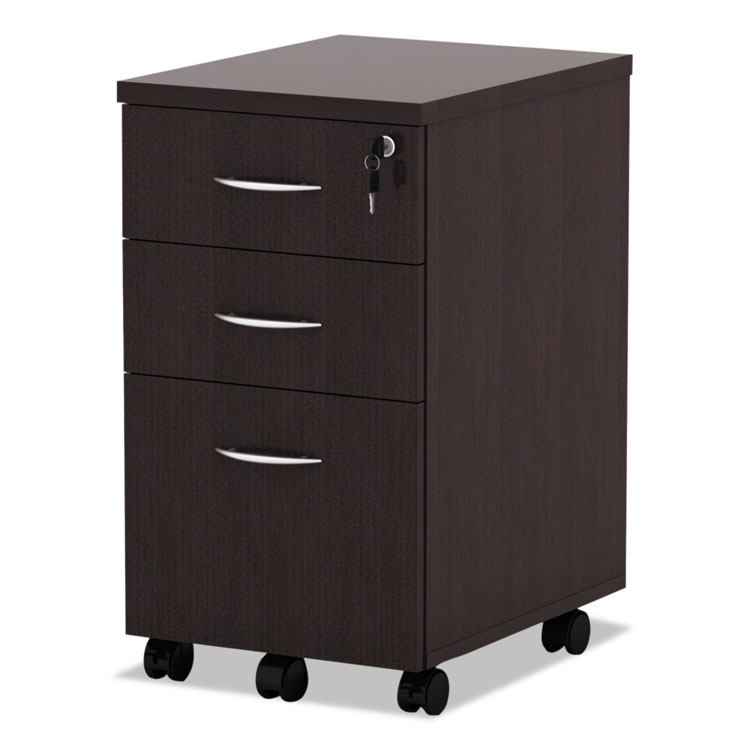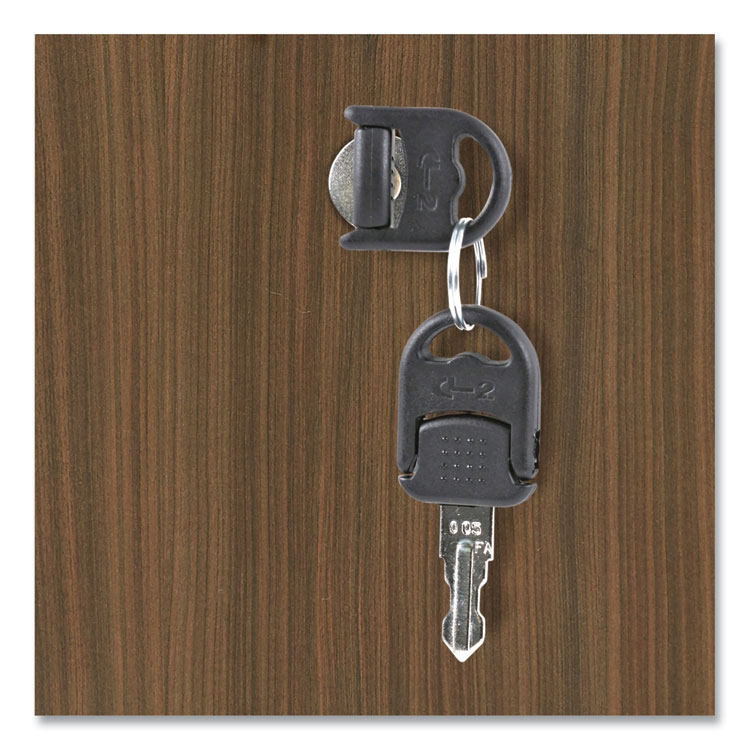 Alera Valencia Series Wardrobe is convenient for storing coats, bags, and personal items. Made with durable, water- and scratch-resistant laminate, it features an adjustable shelf, two coat hooks, and a protective edge. Finished in Espresso, it measures 11.88" W x 22.78" D x 65" H.