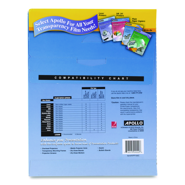 Apollo Color Laser/Inkjet Transparency Film, 8.5 x 11, 50/Box (APOUF1000E)
