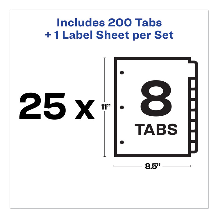 Avery Print and Apply Index Maker Clear Label Dividers, 8-Tab, 11 x 8.5, White, 25 Sets (AVE11447)