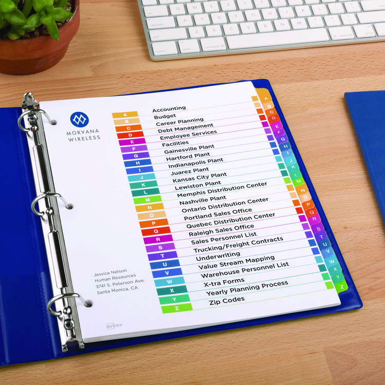 Avery Insertable Big Tab Plastic Dividers, 8-Tab, 11 x 8.5, Assorted, 1 Set (AVE11901)