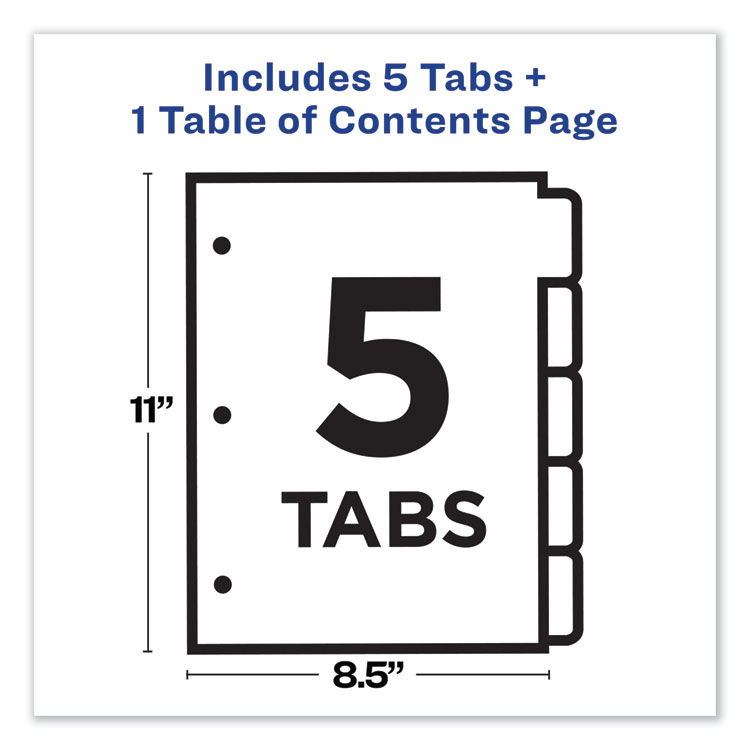 Avery Insertable Big Tab Plastic 1-Pocket Dividers, 5-Tab, 11.13 x 9.25, Assorted, 1 Set (AVE11902)