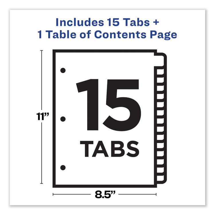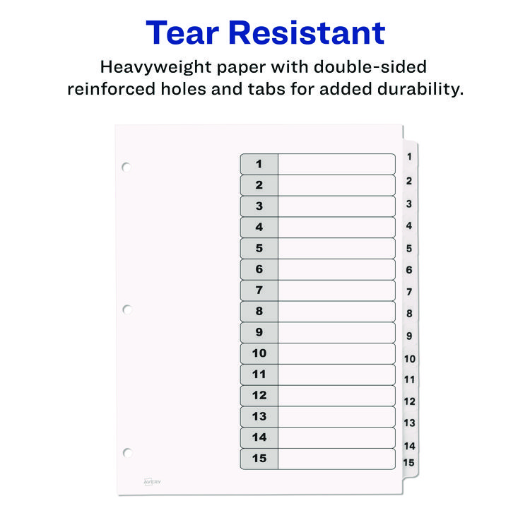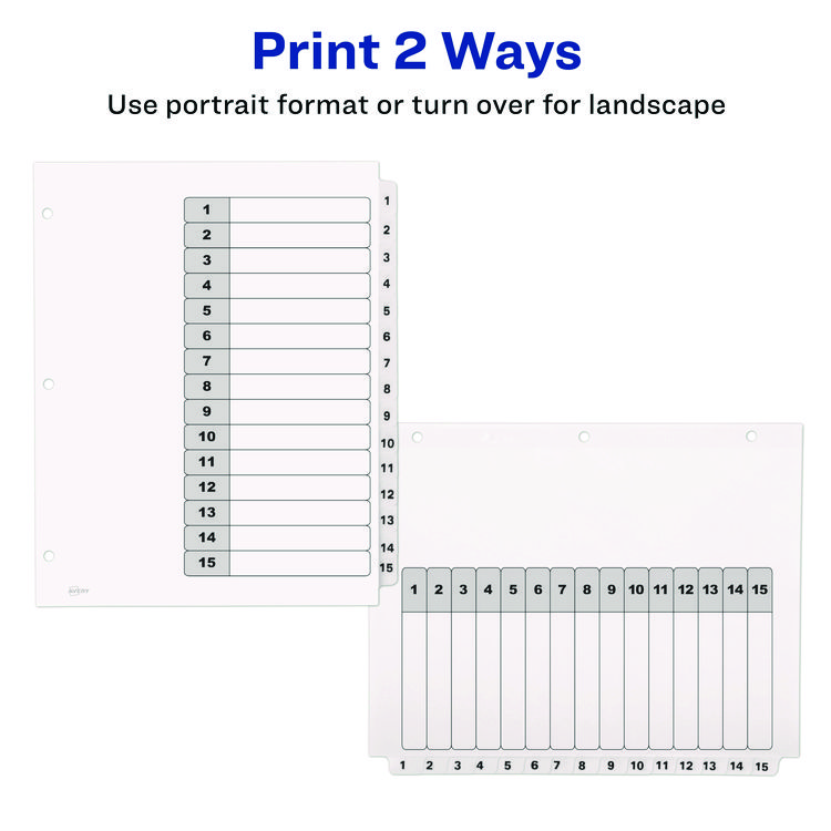 Avery Customizable Table of Contents Ready Index Black and White Dividers, 15-Tab, 1 to 15, 11 x 8.5, White, 6 Sets (AVE11825)