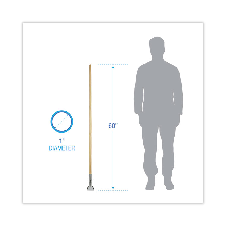 The Boardwalk Quick Change Mop Handle makes it easy to switch mop heads without any hassle. Simply slide open the side gate and use the thumb wheel to secure the mop head in place. The handle is made of solid wood with a comfortable grip and is ideal for use with 1-inch headband mop heads (sold separately). It fits mop heads #12 and #16 and has a 54" length.