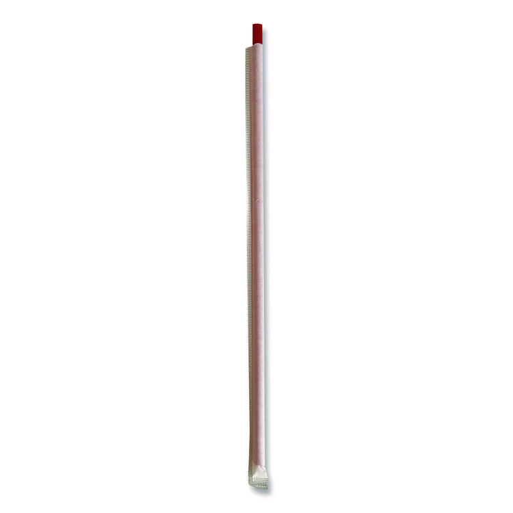 Boardwalk Wrapped Giant Straws are clean and easy to use for cold drinks. They’re red, 10.25" long, and made from strong polypropylene. You get 1,200 straws in each box, perfect for bars, restaurants, and concession stands.