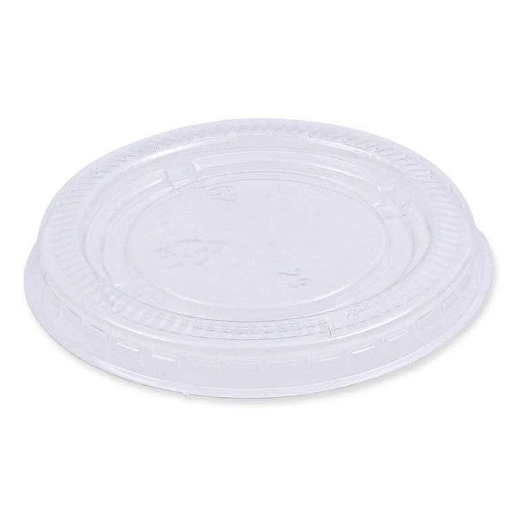 These Boardwalk Souffle/Portion Cup Lids are perfect for keeping sauces and dressings secure. They fit tightly on 1.5 oz and 2 oz portion cups, preventing spills during storage or transport. Ideal for packing sides, condiments, and toppings in smaller portions. Made of clear PET material, these lids come in a carton of 2,500.