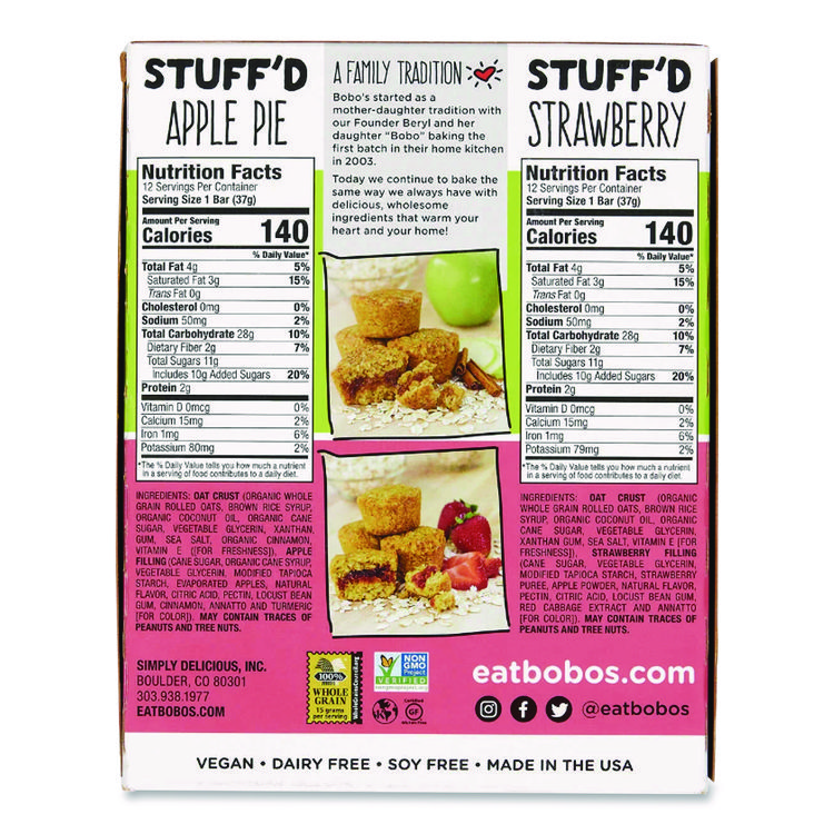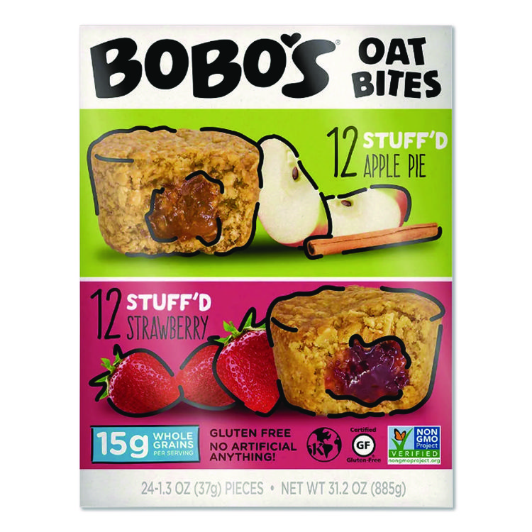 Bobo’s Stuff’D Apple Pie/Strawberry Oat Bites, 1.3 oz Individually Wrapped, 24/Carton (BBO00125)