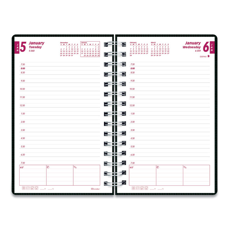 Brownline DuraFlex Daily Planner, 8 x 5, Black Cover, 12-Month (Jan to Dec): 2026 (REDCB634VBLK)