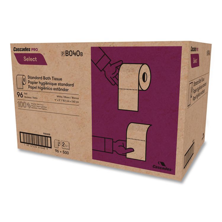 Cascades PRO Select Standard Bath Tissue, Septic Safe, 2-Ply, White, 500 Sheets/Roll, 80 Rolls/Carton (CSDB211)