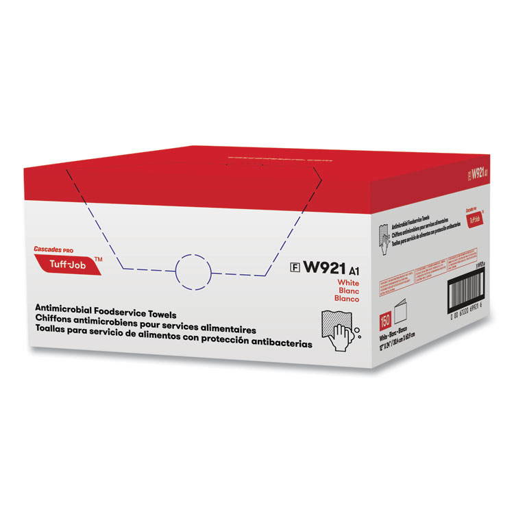 Cascades PRO Tuff-Job S900 Antimicrobial Foodservice Towels, 12 x 24, White/Red, 150/Carton (CSDW921)