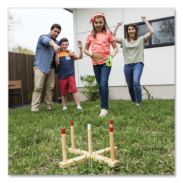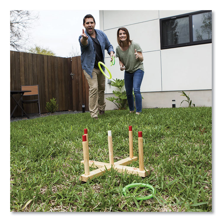 Champion Sports Ring Toss Set, Plastic/Wood, Assorted Colors, 5 Pegs, 4 Rings (CSIQS1)