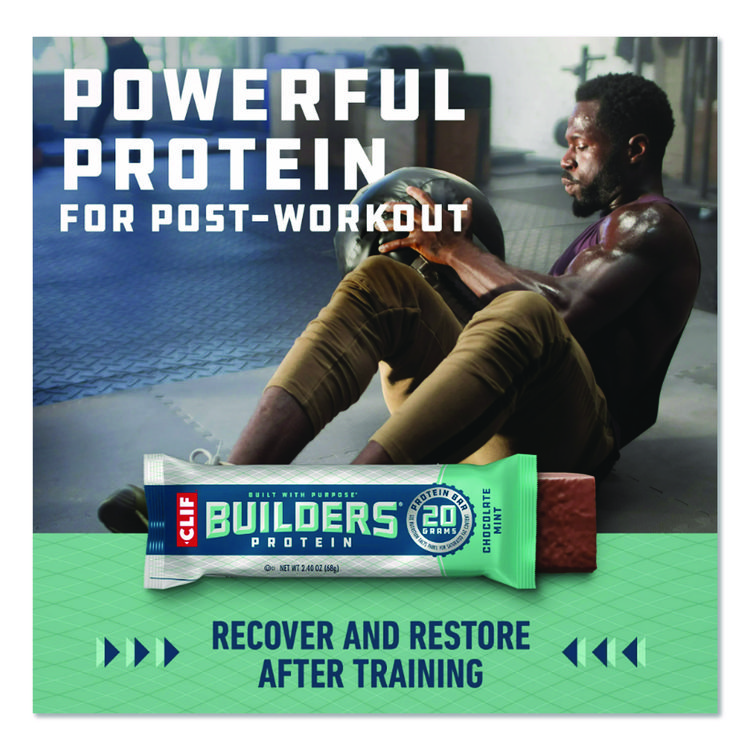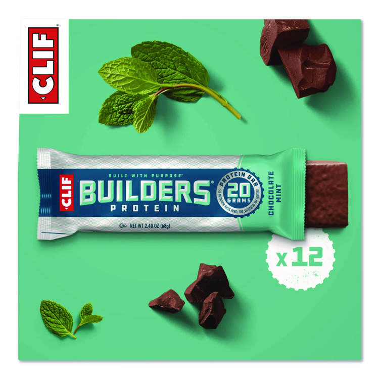 CLIF Bar Builders Protein Bar, Chocolate Mint, 2.4 oz Bar, 12 Bars/Box (CBCCCC160044)