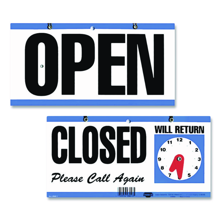 COSCO Open/Closed Outdoor Sign, 11.6 x 6, Blue/White/Black (CSC098013)