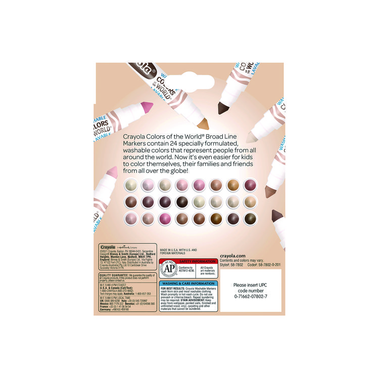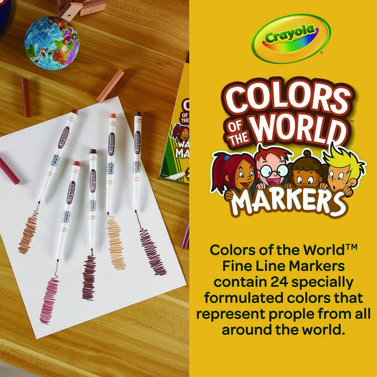 Crayola Colors of the World Washable Markers, Fine Bullet Tip, Assorted Colors, 24/Pack (CYO587810)