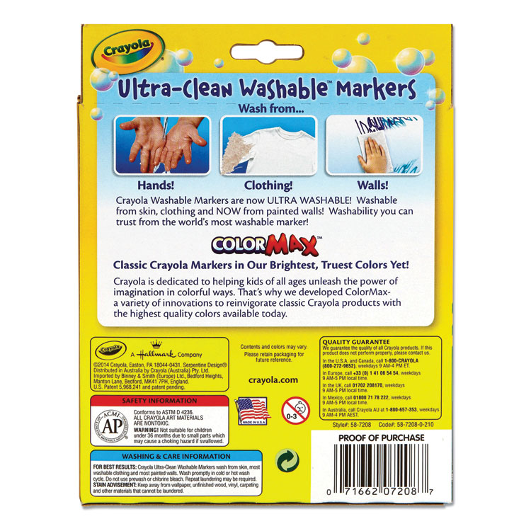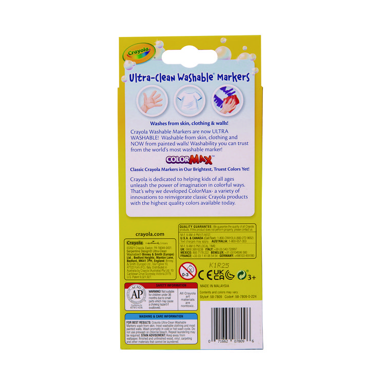 Crayola Ultra-Clean Washable Markers, Fine Bullet Tip, Assorted Colors, 8/Pack (CYO587809)