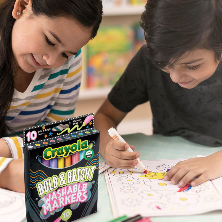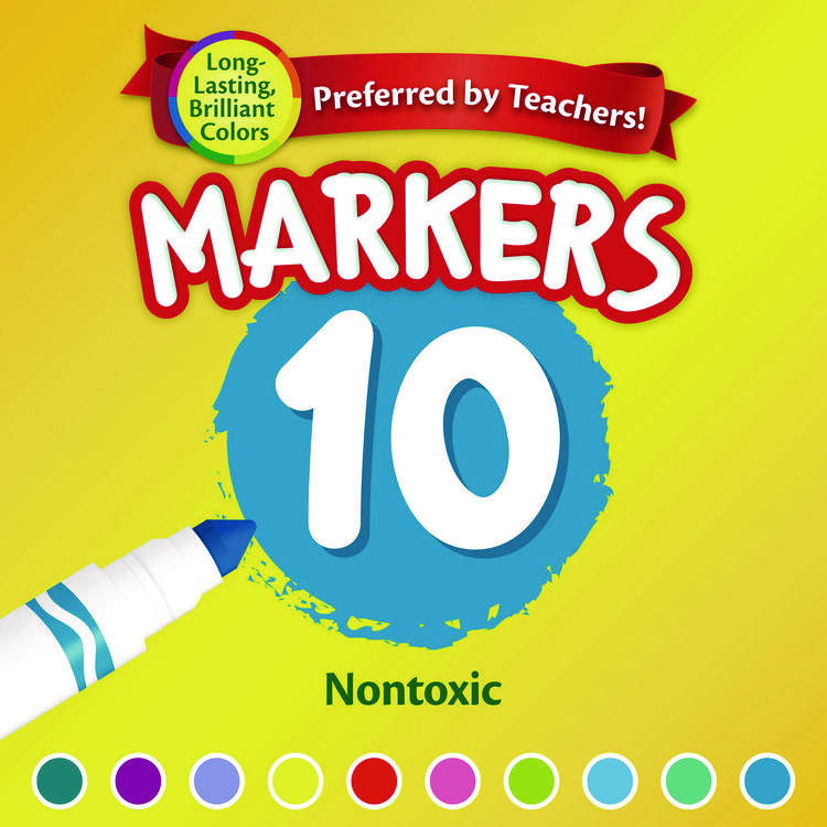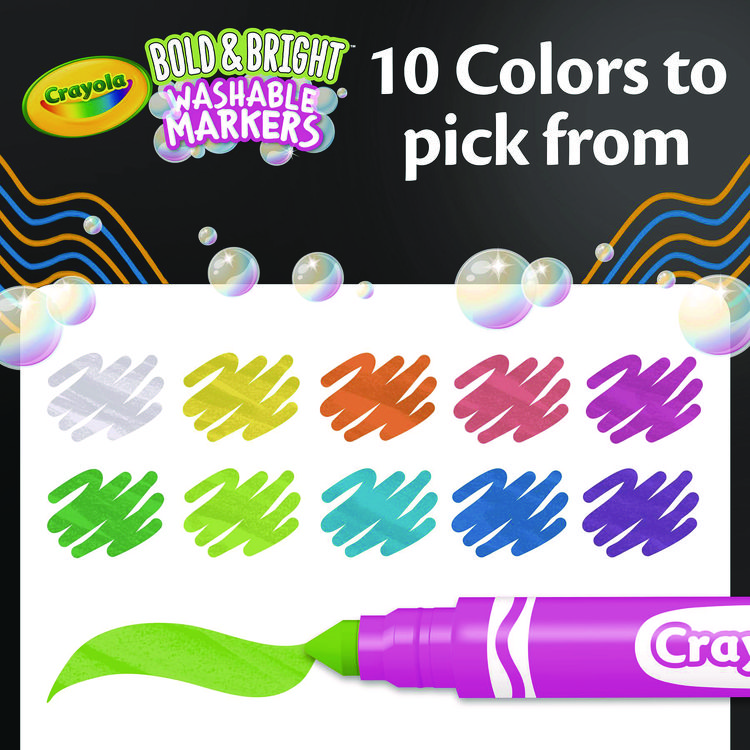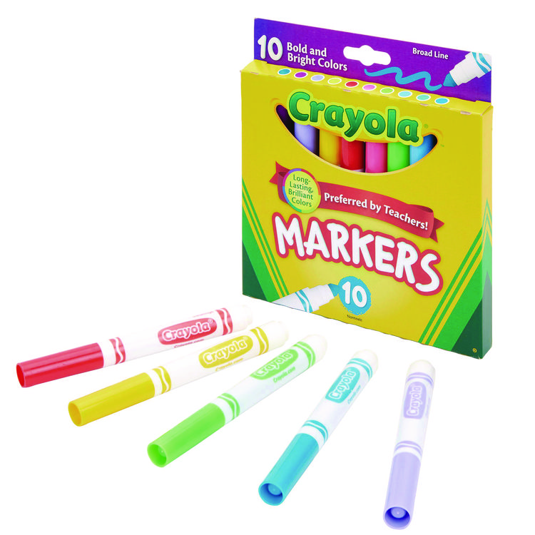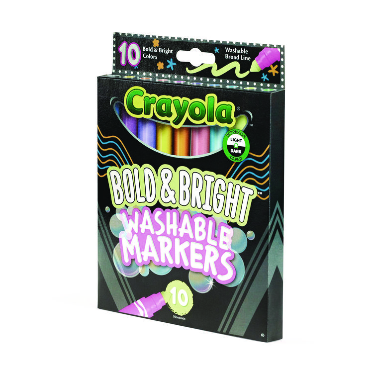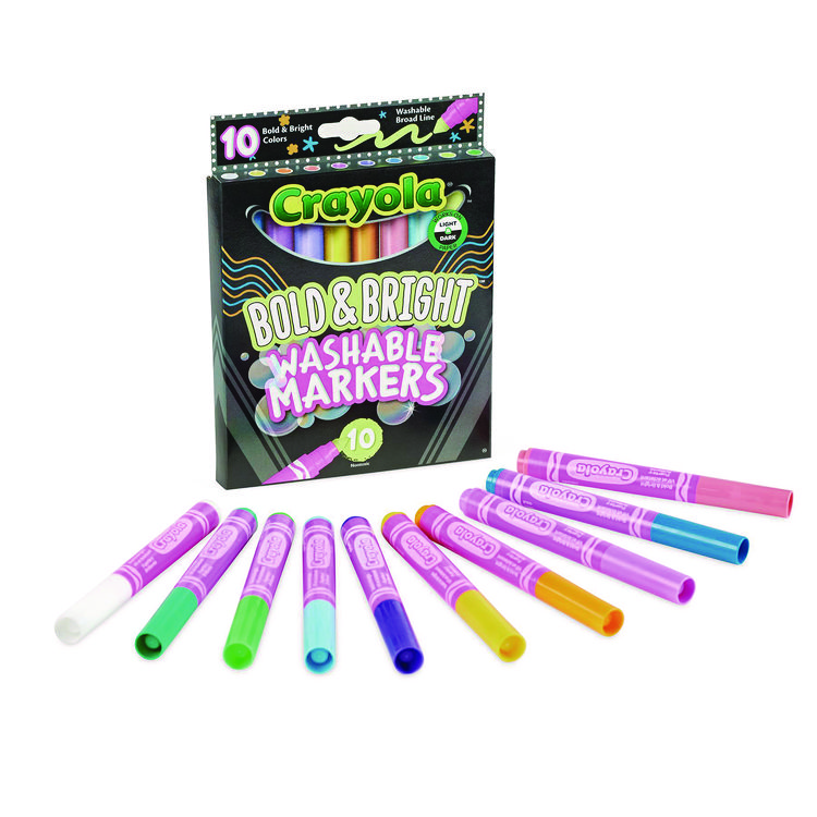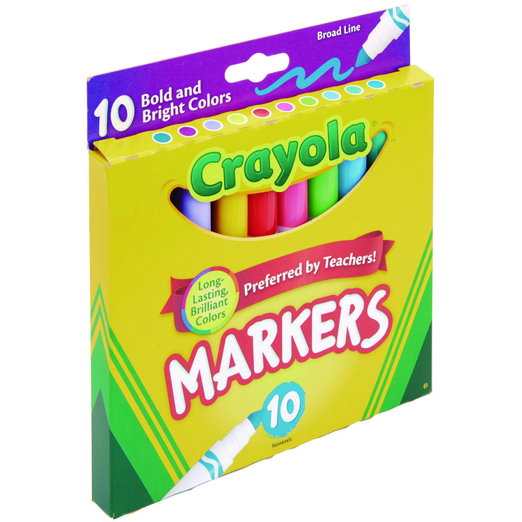 Crayola Bold and Bright Washable Markers, Broad Bullet Tip, Assorted Colors, 10/Box (CYO587735)