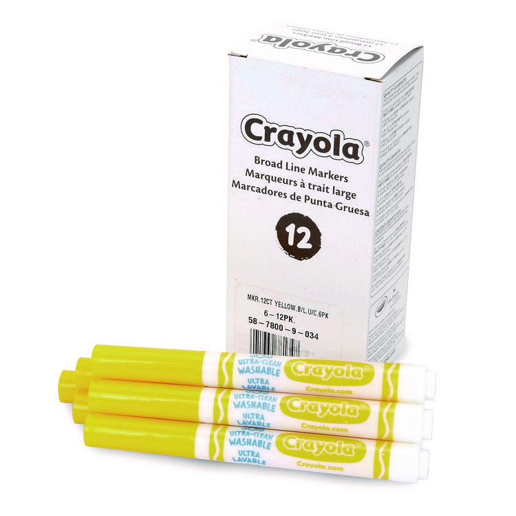 Crayola Broad Line Washable Markers, Broad Bullet Tip, Yellow, 12/Box (CYO587800034)