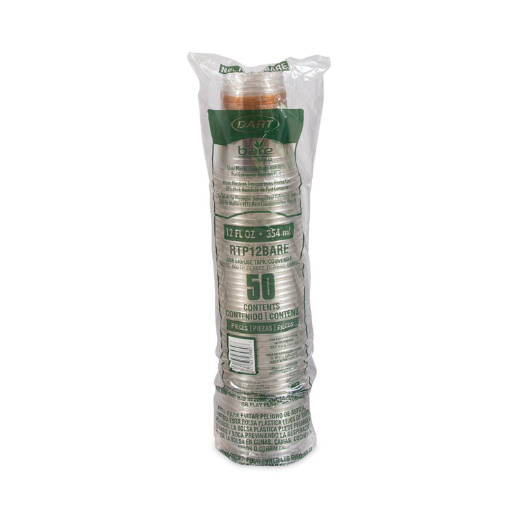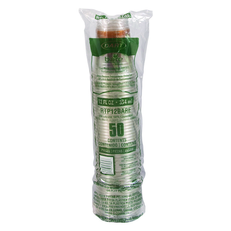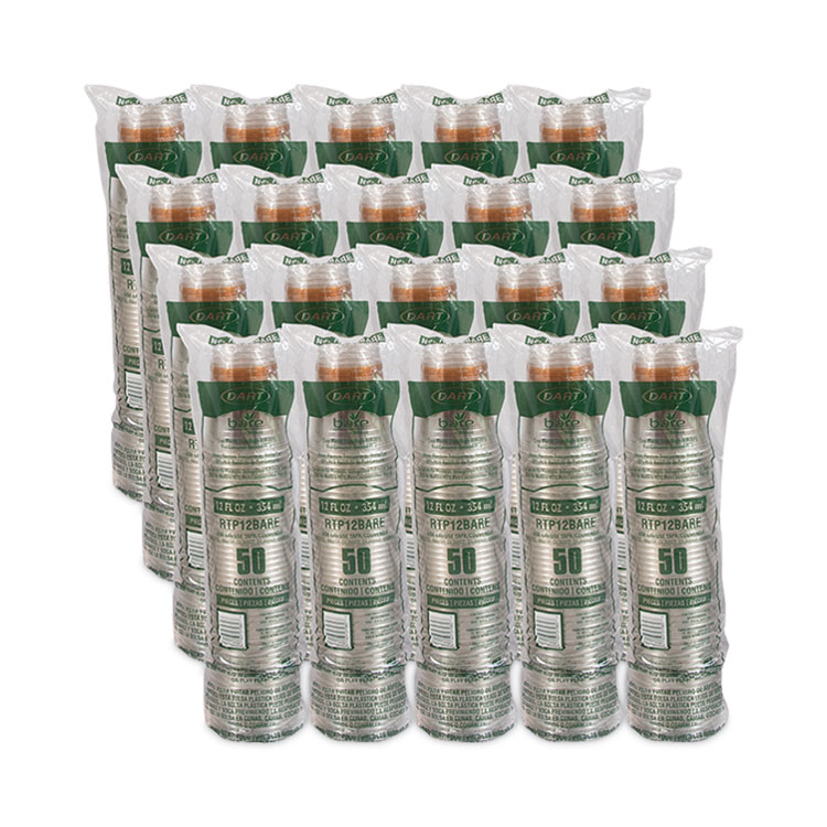 Dart Bare Eco-Forward RPET Cold Cups, Squat, 12 oz to 14 oz, Plastic, Leaf Design, 50/Pack (DCCRTP12BAREPK)