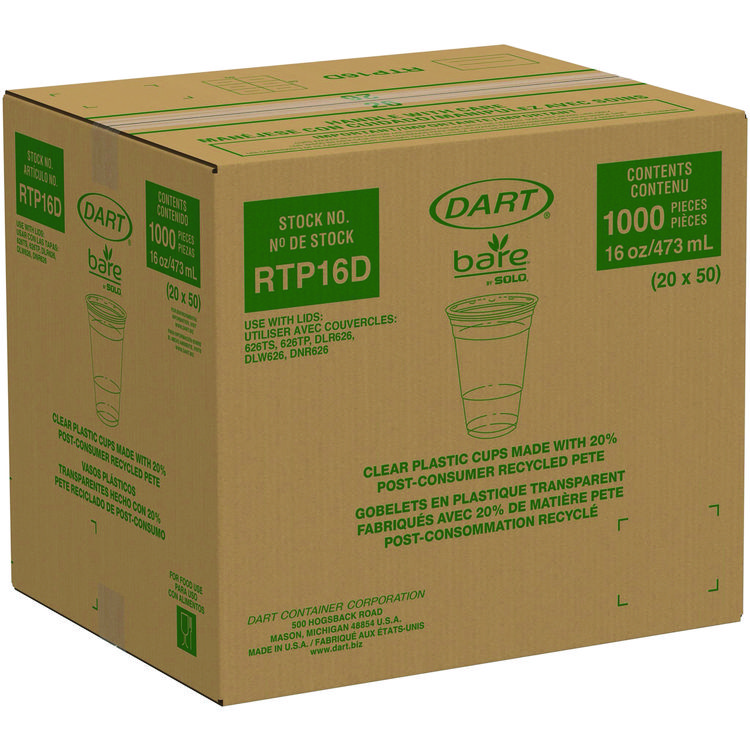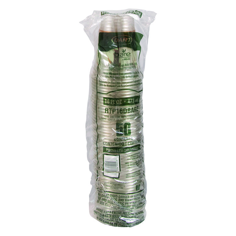 Dart Bare Eco-Forward RPET Cold Cups, 16 oz to 18 oz, Plastic, Leaf Design, 50/Pack (DCCRTP16DBAREPK)