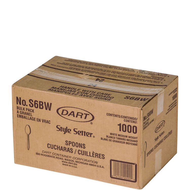 Dart Style Setter Mediumweight Plastic Spoons, White, 1,000/Carton (DCCS6BW)