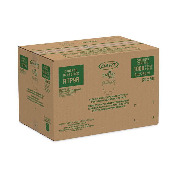 Dart Bare Eco-Forward RPET Cold Cups, 9 oz, Plastic, Leaf Design, 1,000/Carton (DCCRTP9RBARE)