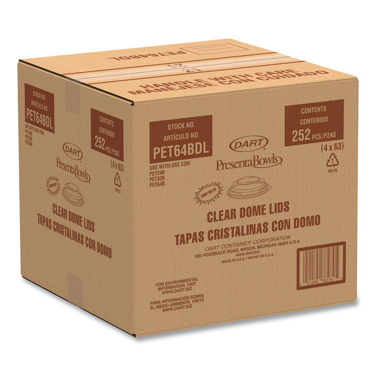 Dart PresentaBowls Lids, Clear, Fits 24 oz to 64 oz Bowls, 7.3″ Diameter x 1.1″ h, Plastic, 252/Carton (DCCPET64BDL)