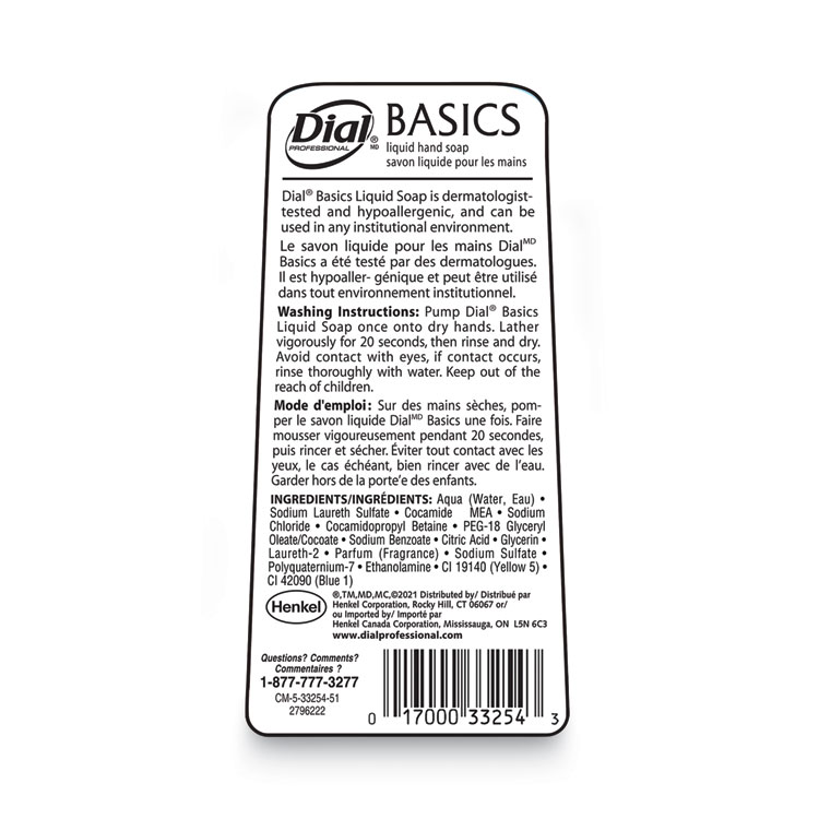 Dial Basics MP Free Liquid Hand Soap, Unscented, 7.5 oz, 12/Carton (DIA33256)