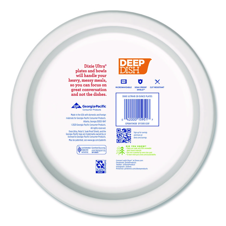 Dixie Ultra Deep Dish Paper Plate, 9.56″ dia, Blue/Yellow, 18/Pack (DXE15951)