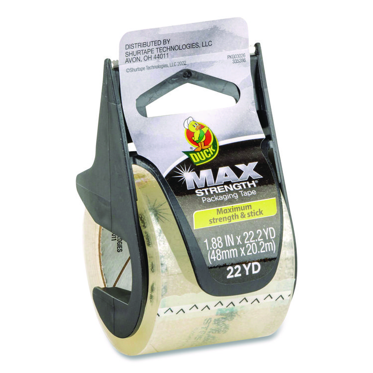 Duck MAX Packaging Tape with Dispenser, 1.5″ Core, 1.88″ x 22 yds, Crystal Clear, 6/Box (DUC284983)