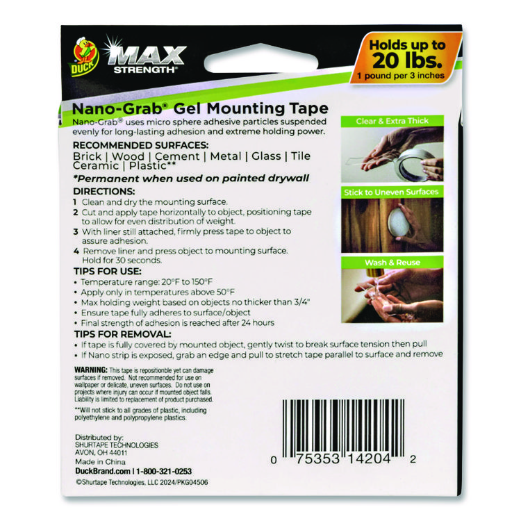 Duck MAX Strength Nano-Grab Double-Sided Gel Tape, 0.94″ x 5 ft, Clear (DUC287264)