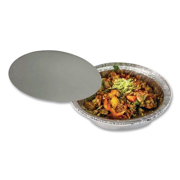 DURABLE PACKAGING Flat Board Lids, For 8″ Round Containers, Silver, Paper, 500/Carton (DPKL280500)