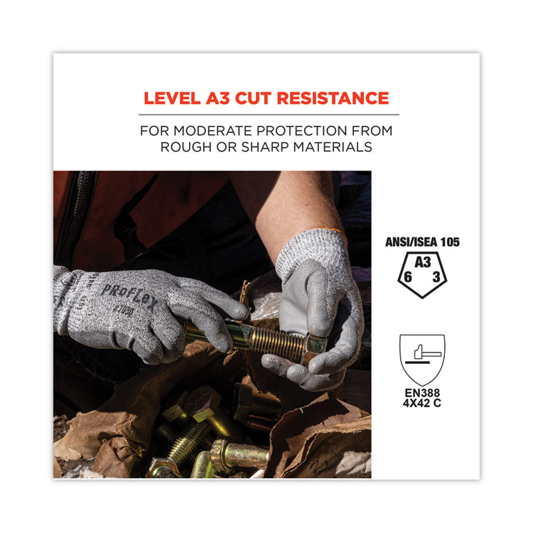 ergodyne ProFlex 7030 ANSI A3 PU Coated CR Gloves, EN388: 4X42C, 9″ Long, Large, Gray, Pair (EGO10464)