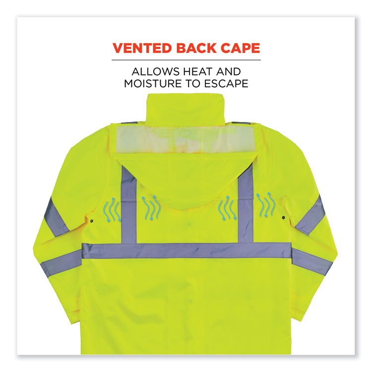 ergodyne GloWear 8366 Class 3 Lightweight Hi-Vis Rain Jacket, Polyester, Small, Lime (EGO24332)