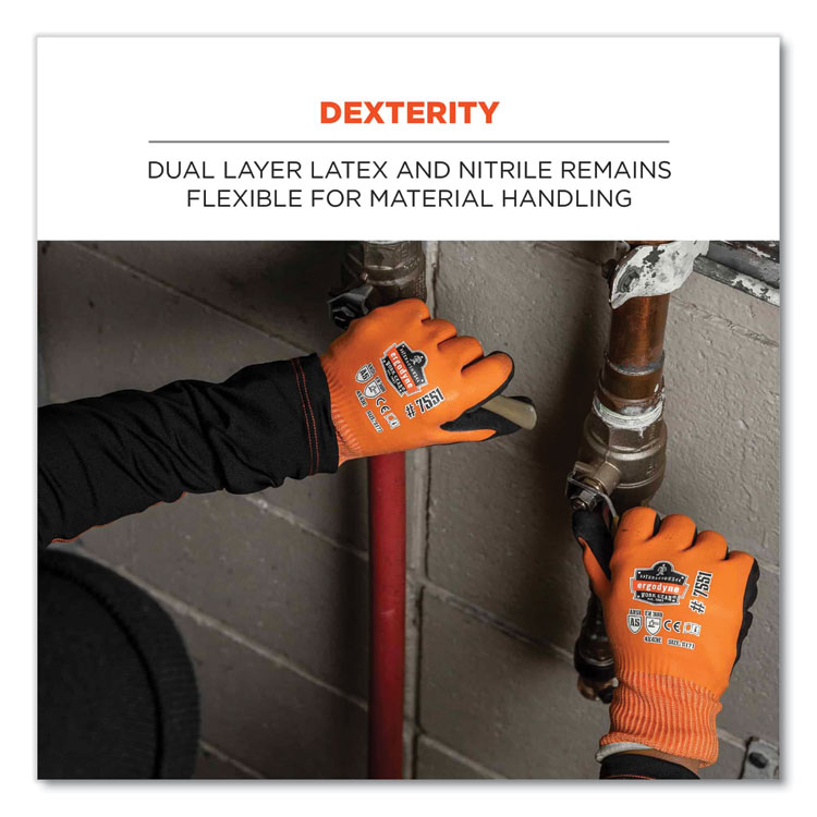 ergodyne ProFlex 7551 ANSI A5 Coated Waterproof CR Gloves, EN388: 4X43E, 10″ Long, Small, Orange, Pair (EGO17672)