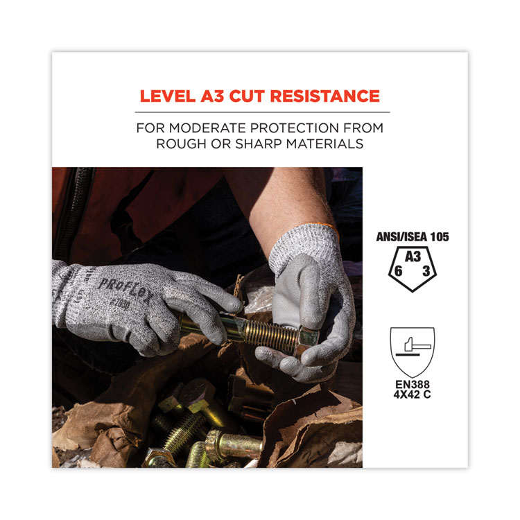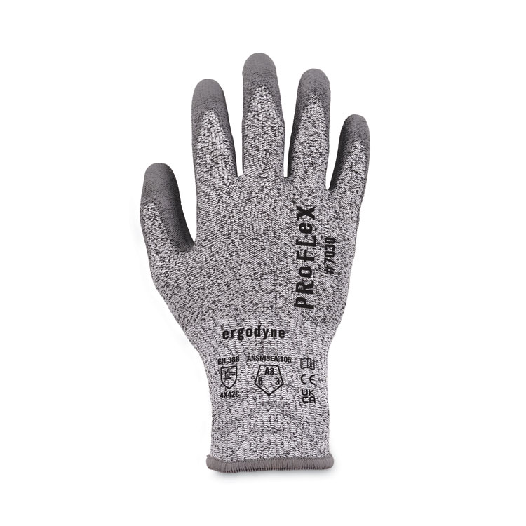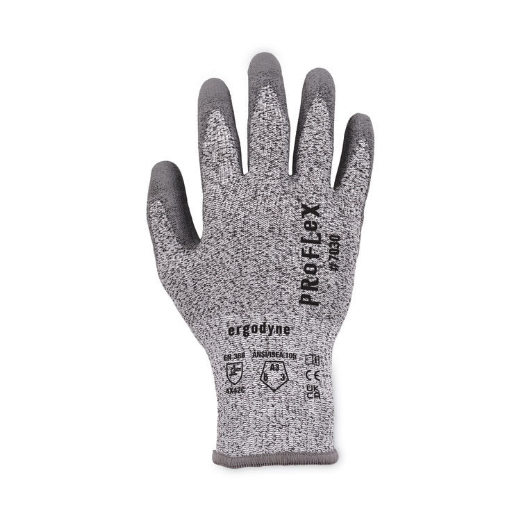 ergodyne ProFlex 7030 ANSI A3 PU Coated CR Gloves, EN388: 4X42C, 9″ Long, X-Large, Gray, Pair (EGO10465)