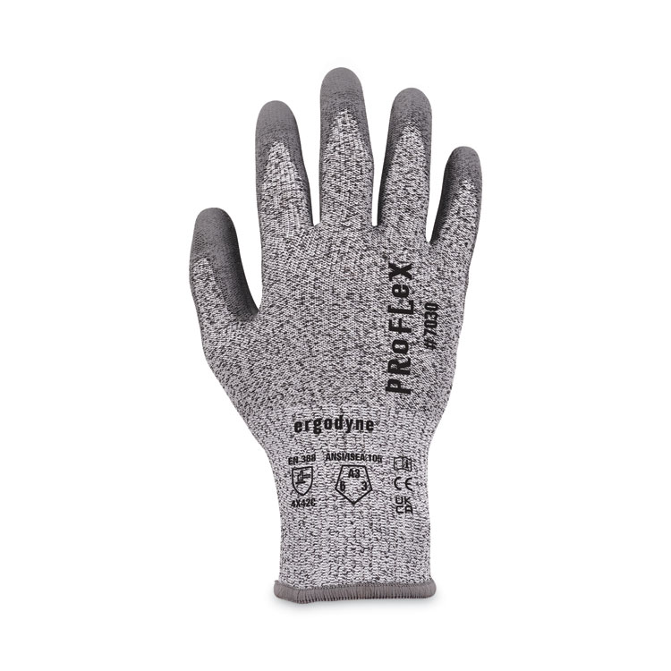 ergodyne ProFlex 7030 ANSI A3 PU Coated CR Gloves, EN388: 4X42C, 9″ Long, Small, Gray, Pair (EGO10462)