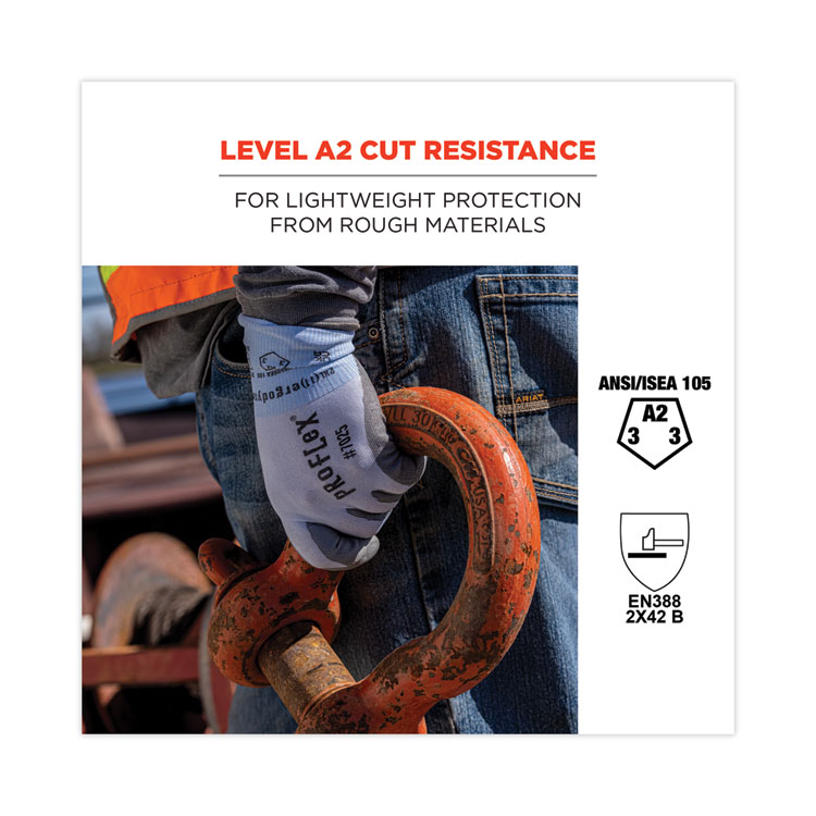 ergodyne ProFlex 7024 ANSI A2 PU Coated CR Gloves, EN388: 4X42B, 9″ Long, Large, Gray, Pair (EGO10404)