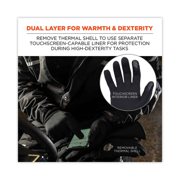 ergodyne ProFlex 825WP Thermal Waterproof Winter Work Gloves, Large, Black, Pair (EGO17604)