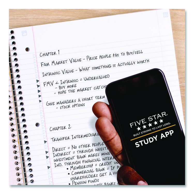 Five Star Reinforced Recycled Filler Paper Plus Study App, 3-Hole, 8.5 x 11, College Rule, 80/Pack (MEA170023)