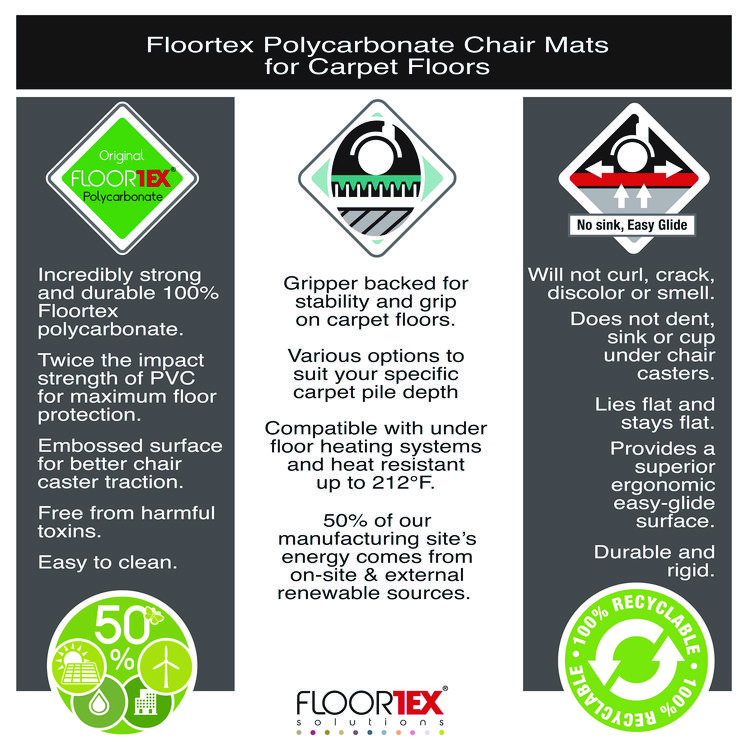 Floortex Cleartex Ultimat XXL Polycarbonate Square General Office Mat for Carpets, 60 x 60, Clear (FLR1115015023ER)