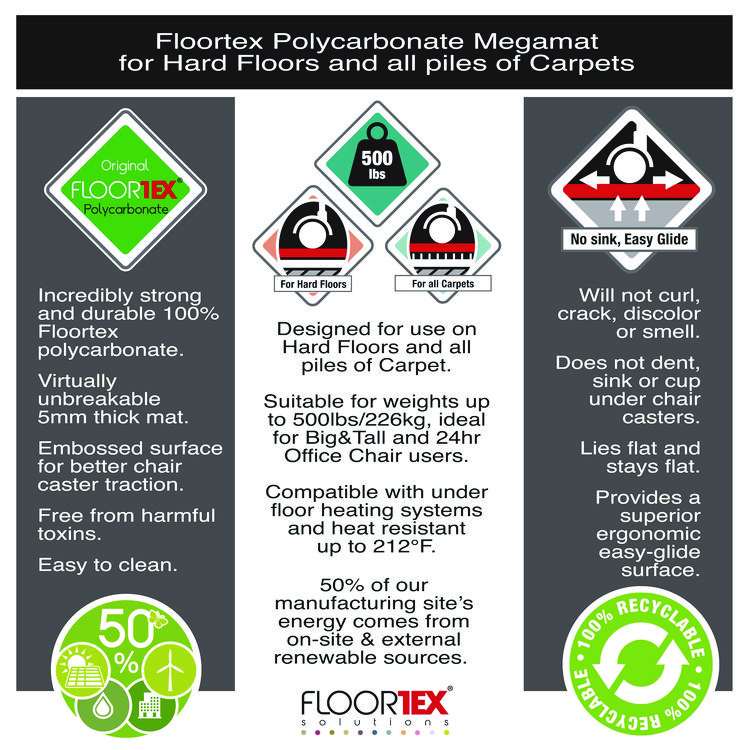 Floortex Cleartex MegaMat Heavy-Duty Polycarbonate Mat for Hard Floor/All Carpet, 46 x 53, Clear (FLRECM121345ER)