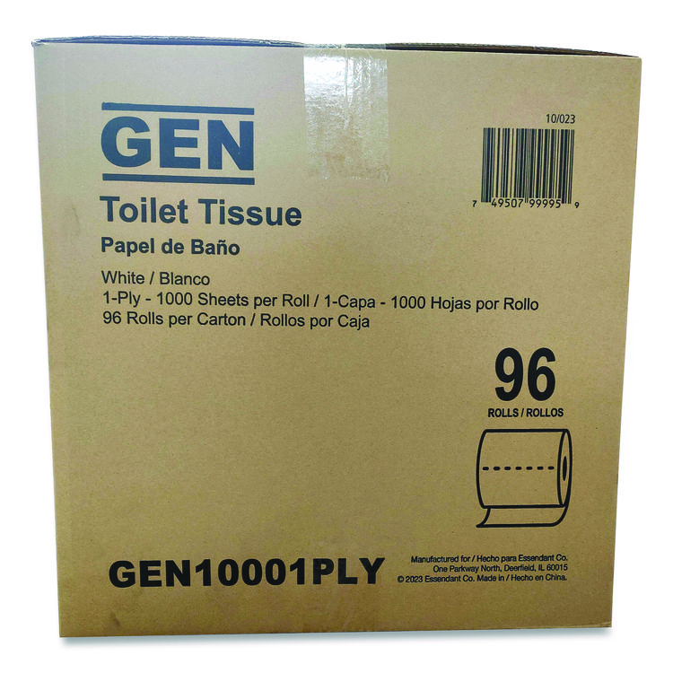 GEN Small Roll Bath Tissue, Septic Safe, 1-Ply, White, 1,000 Sheets/Roll, 96 Rolls/Carton (GEN10001PLY)