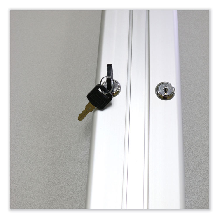 Ghent 3 Door Enclosed Vinyl Bulletin Board with Satin Frame, 96″ x 48″, Silver Surface, Satin Aluminum Frame (GHEPA34896VX193)