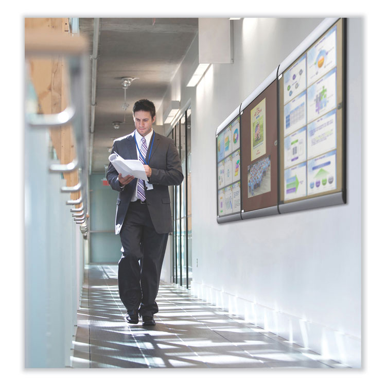 Ghent 3 Door Enclosed Natural Cork Bulletin Board with Satin Frame, 96″ x 48″, Tan Surface, Satin Aluminum Frame (GHEPA34896K)