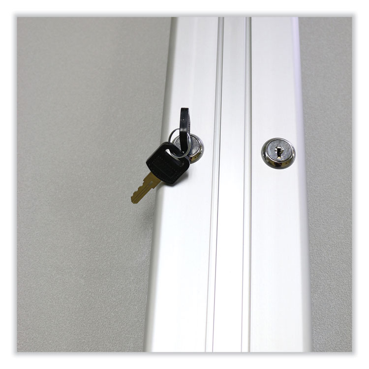 Ghent 3 Door Enclosed Vinyl Bulletin Board with Satin Frame, 72″ x 48″, Silver Surface, Satin Aluminum Frame (GHEPA34872VX193)