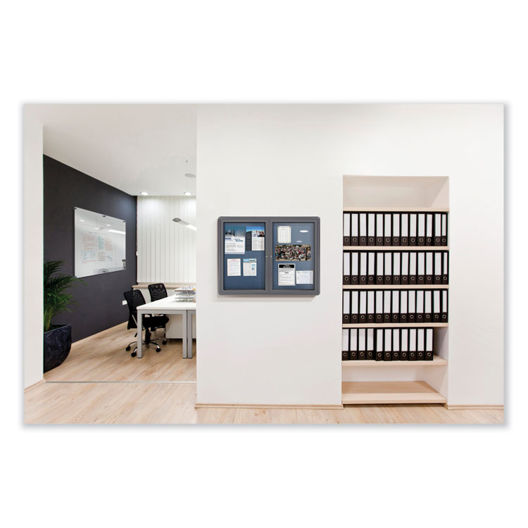 Ghent 2 Door Enclosed Vinyl Bulletin Board with Satin Frame, 60″ x 48″, Silver Surface, Satin Aluminum Frame (GHEPA24860VX193)