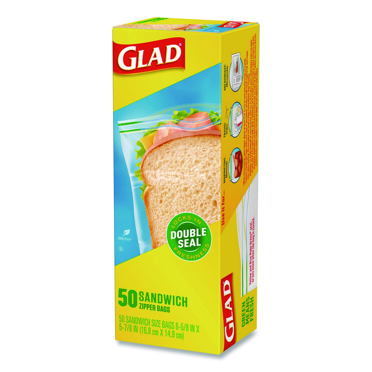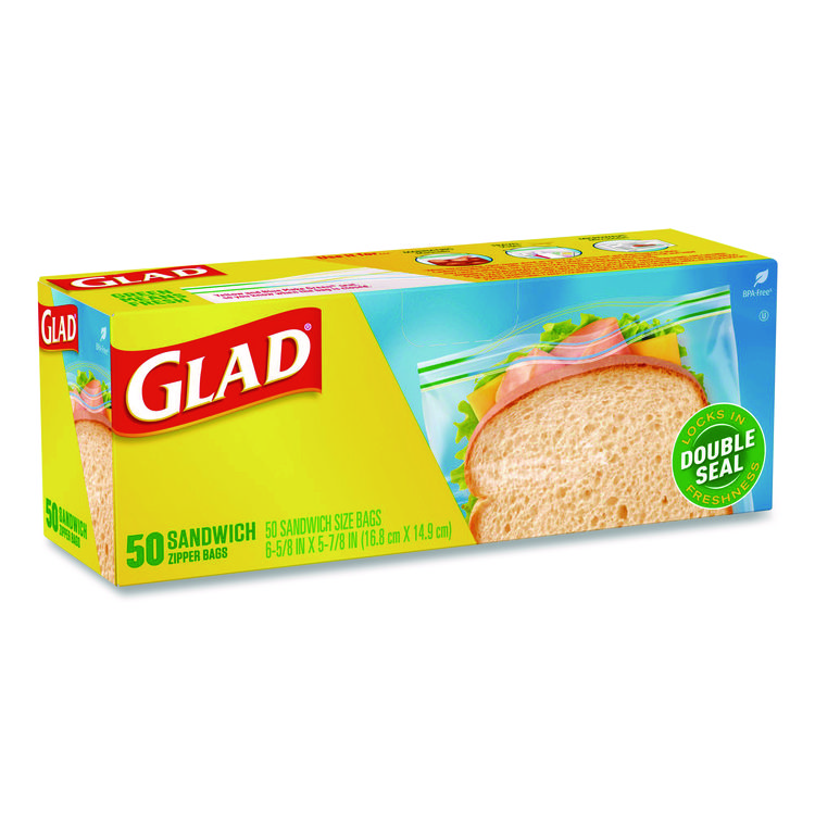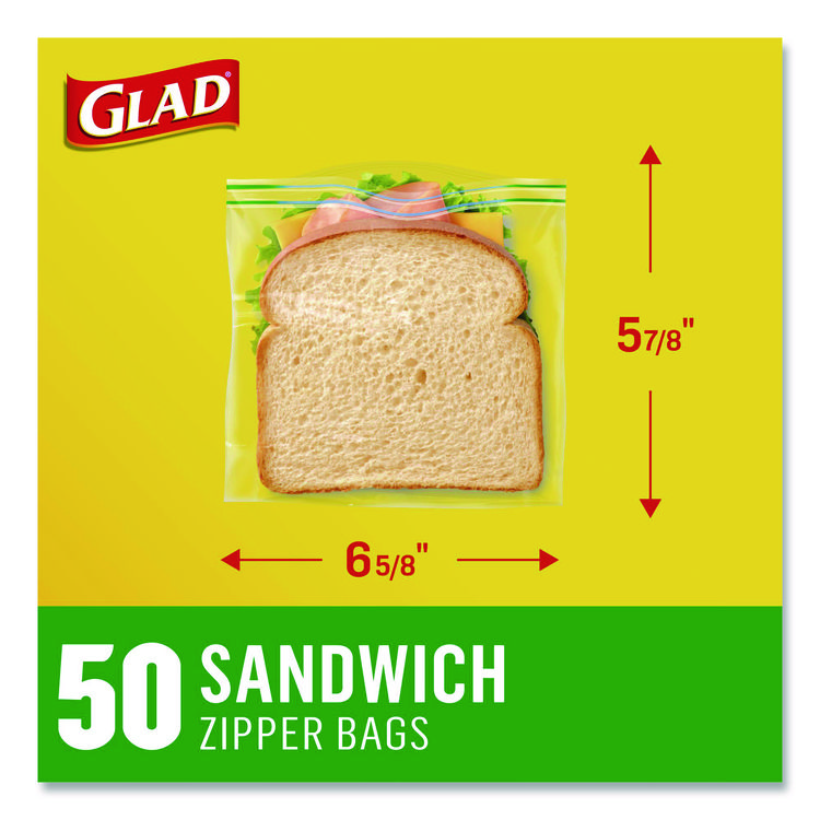 Glad Zipper Food Storage Plastic Sandwich Bags, 6.63 x 5.88, Clear, 50 Bags/Box, 12 Boxes/Carton (CLO57263)