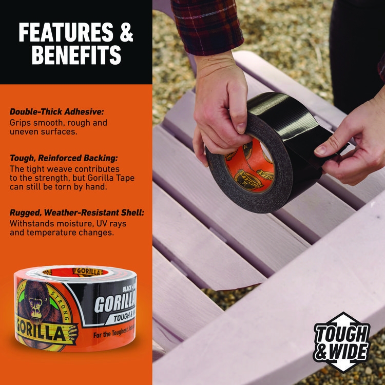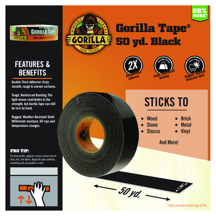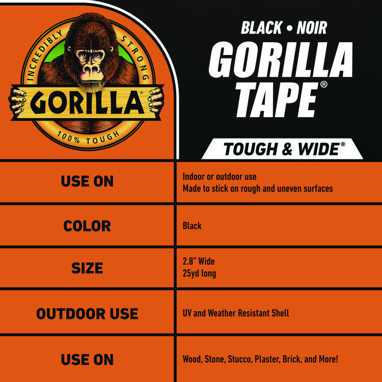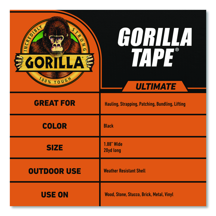 Gorilla Gorilla Tape, 3″ Core, 2.88″ x 25 yds, Black (GOR106425)
